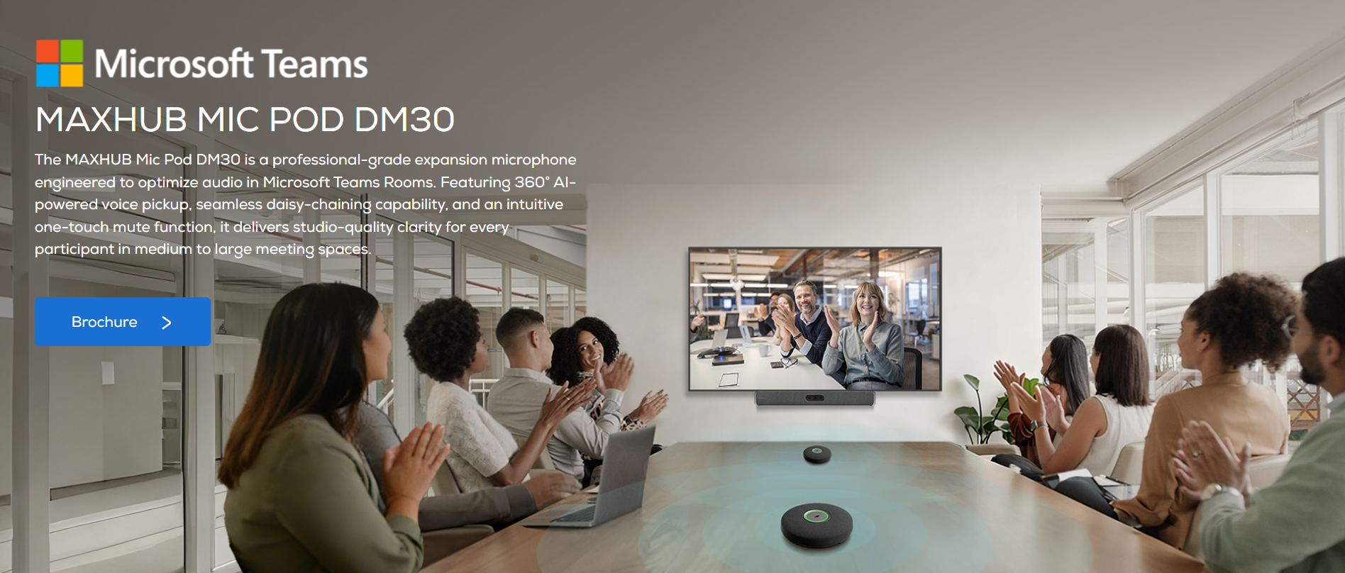 unify audio pickup across the room. The system can scale to deliver clear,