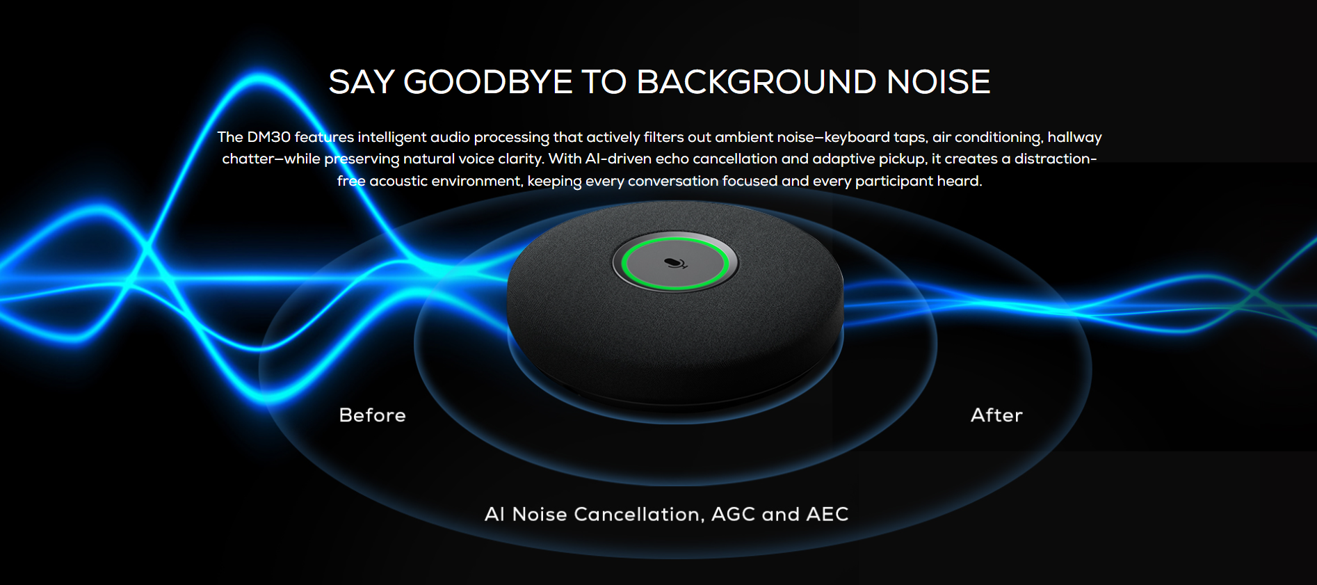 An 8-microphone array and AI-powered sound processing work together to